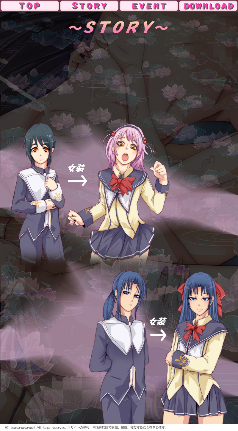 そこで繰り広げられていたのは、女の子の服を着た男子生徒達が乱交に耽っている姿。その痴態を見つめながら、旬は自分の身体が熱くなっていることに気づいてしまう。